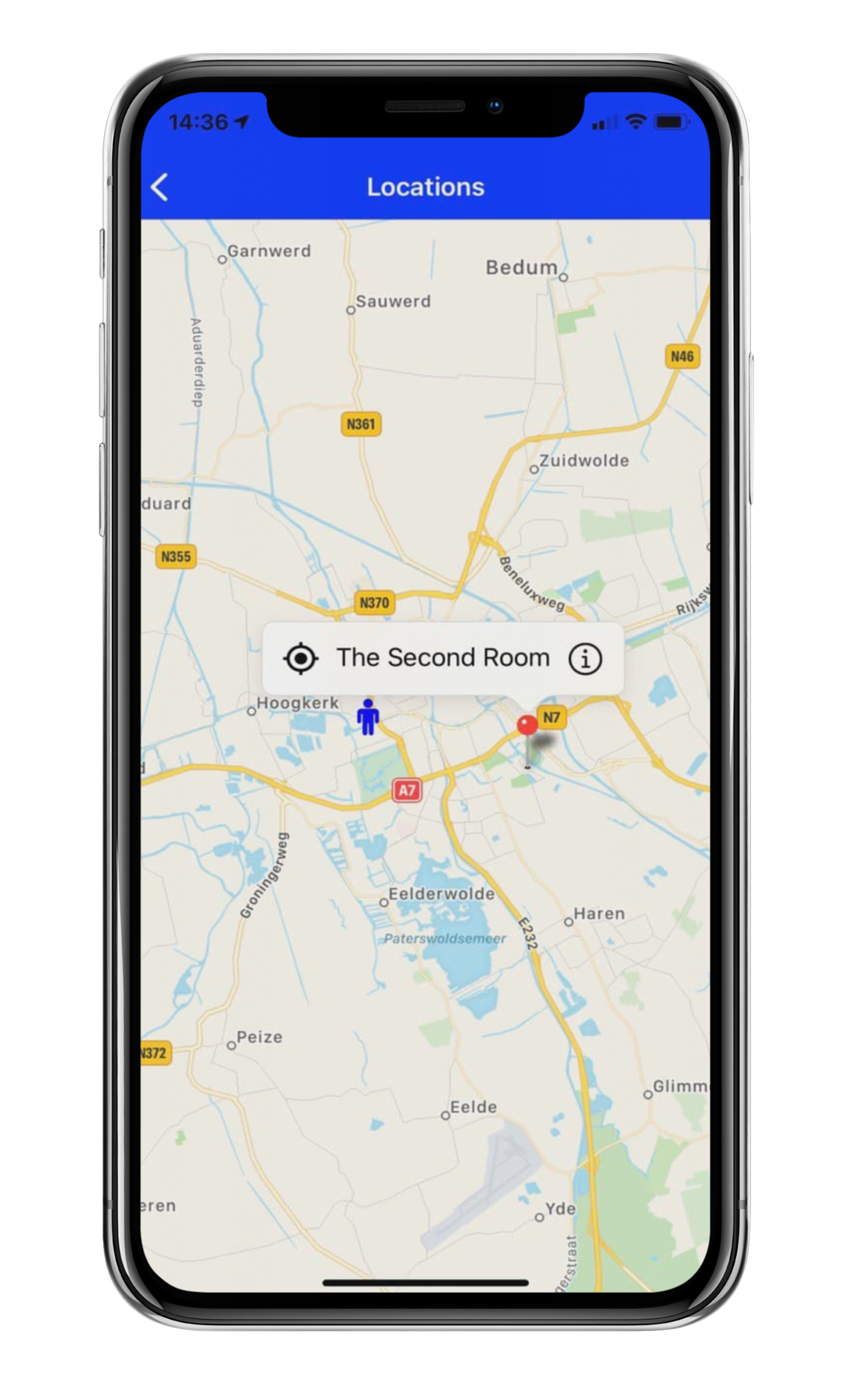 Once set up, your users will be able to find the link to the Interactive map on the location overview, like in the example below: