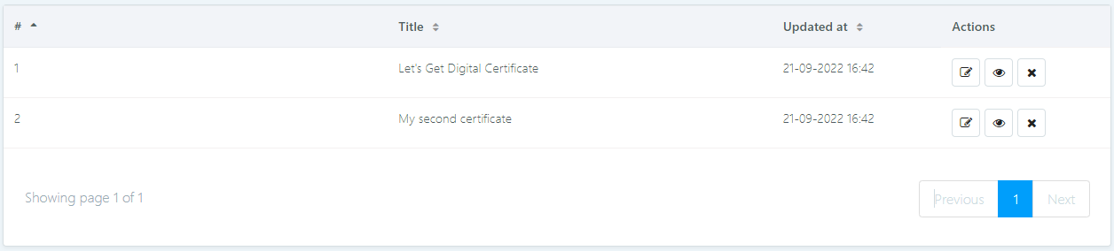 It is possible to manage the certificates created in the admin panel. Once created you can edit, preview or delete a certificate by completing the following steps:&#x20;